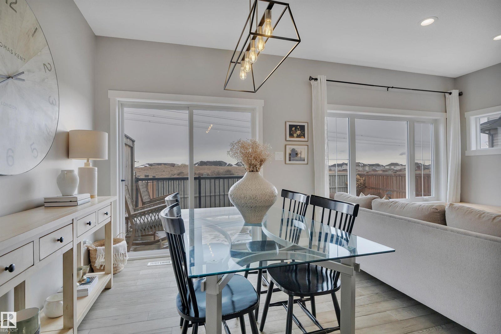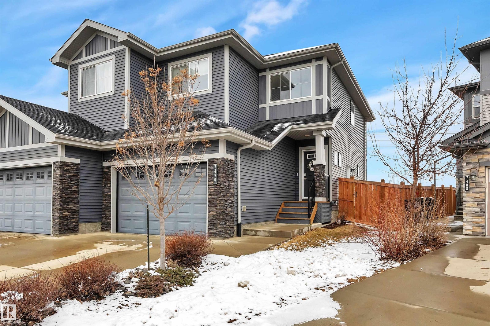 Welcome to this beautifully upgraded half duplex in the family-friendly community of Chappelle in SW Edmonton! This well-maintained home offers 3 spacious bedrooms, 2.5 bathrooms, and a functional layout perfect for modern living. The main floor features stunning engineered hardwood, stylish fireplace accent wall and a bright open-concept design. The kitchen is equipped with two toned cabinets, upgraded stainless steel appliances, a convenient walk-through pantry, and plenty of storage. Enjoy the added convenience of main floor laundry and direct access to the oversized single garage. Upstairs, you’ll find a versatile bonus room, perfect for a family lounge, home office, or play area. The primary bedroom is a true retreat, complete with dual his-and-hers closets and a private ensuite. Stay comfortable year-round with central air conditioning, and unwind in your backyard that backs onto a peaceful green space with walking path. This home offers the perfect blend of comfort, style, and convenience.